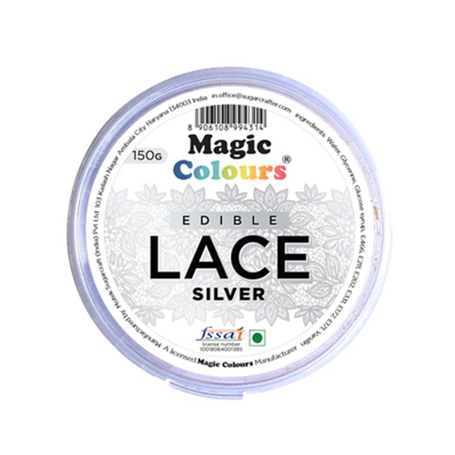 Your are here : HomeIngredientsGum Paste, Icing & FondantEdible Cake Lace Magic Colours Silver Edible Lace