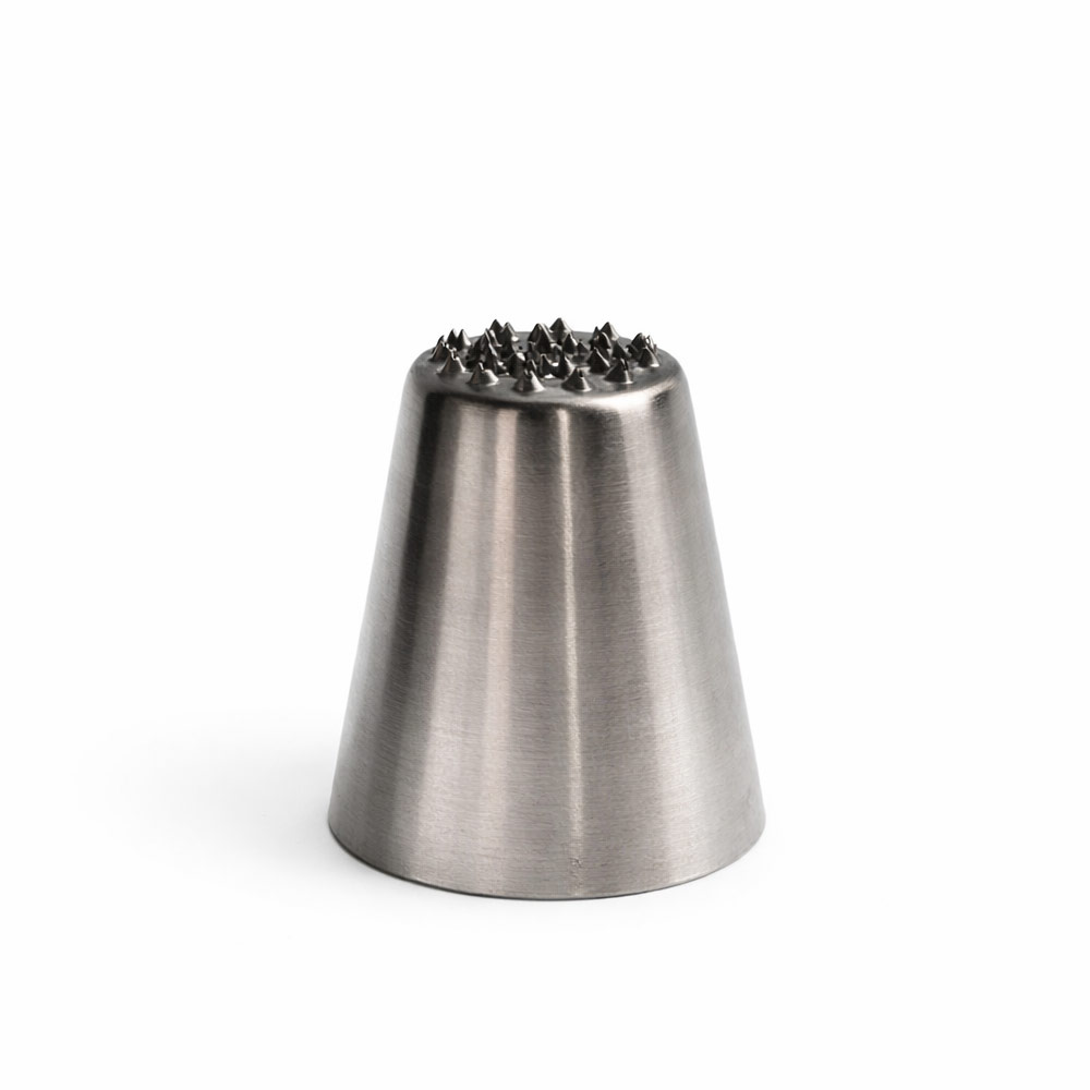 Made from high quality stainless steel, the Grass Icing Tip offers durability, rust resistance, and long lasting performance. The multiple small holes at the tip are engineered to produce evenly spaced strands, allowing you to build layered textures that add depth and creativity to your baked creations. It is suitable for use with buttercream, whipped cream, and other smooth frostings that hold shape well.
